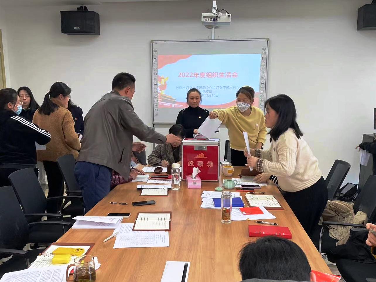 2月15日,苏州市妇女儿童活动中心(妇女干部学校)党支部召开2022年度组织生活会,并开展民主评议党员工作。苏州市妇联机关党委副书记安川同志列席会议。
