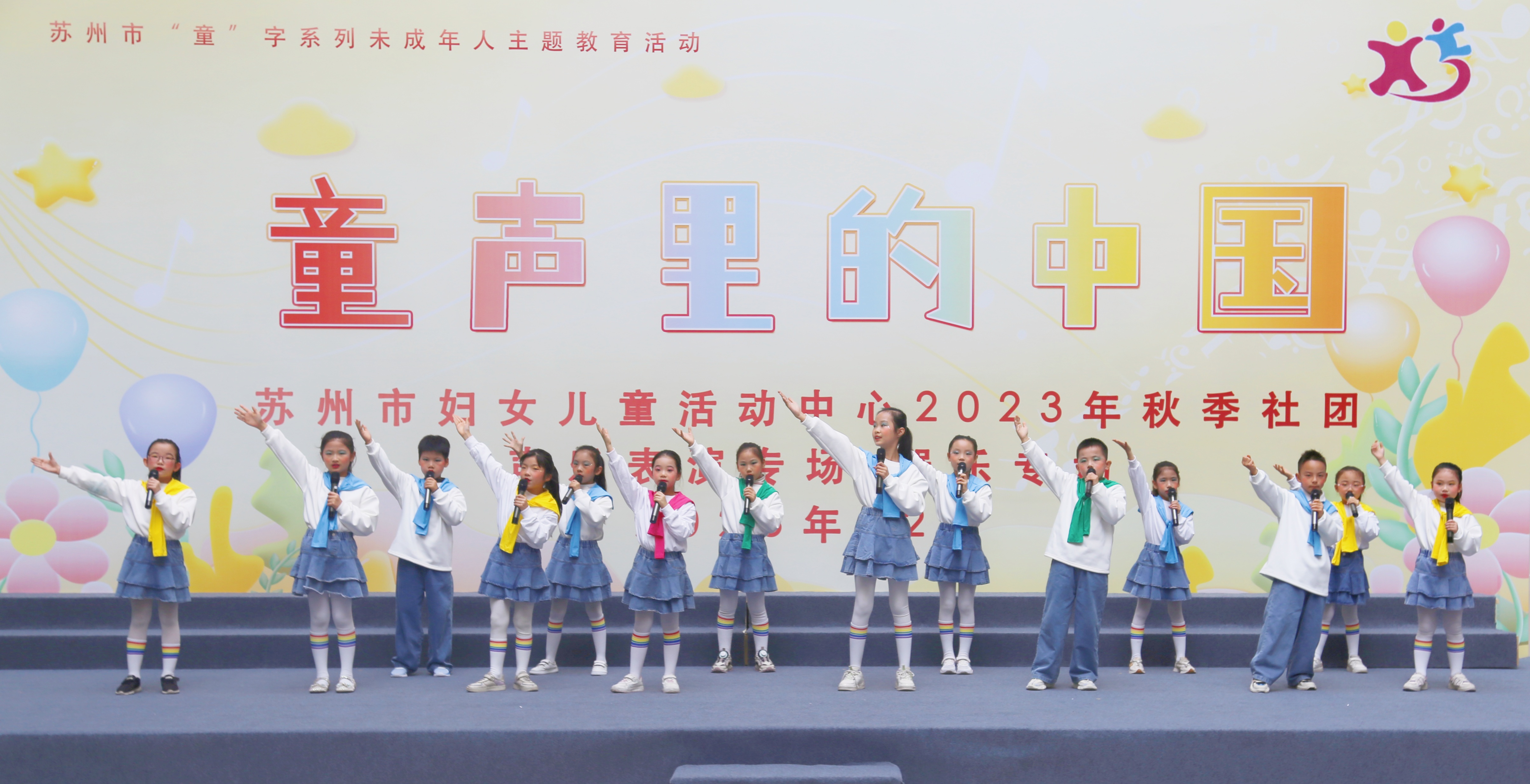 为深入推进新时代五育融合,增强对少年儿童的美育熏陶,激发少年儿童对艺术的热情,12月9日,苏州市妇女儿童活动中心开展“童声里的中国”2023年秋季社团展演声乐表演专场活动。9个节目百余名师生到场同台参演,让在场观众感受艺术魅力。
