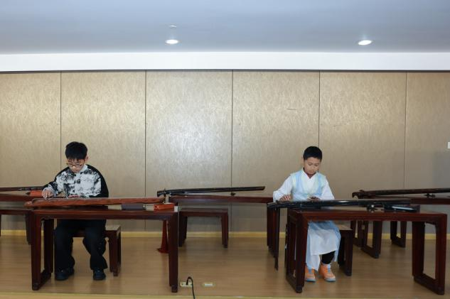 闵栀夏、费茉恬姐妹俩的古琴重奏《招隐》,在蒋老师的鼓声伴奏下,更添一份山林隐逸之气。最后,展演在李沐涵、孟雨昕等学员合奏的《春风》中落下帷幕,明快的旋律仿佛带来了盎然的春意,也为本次成果展画上了一个圆满的句号。