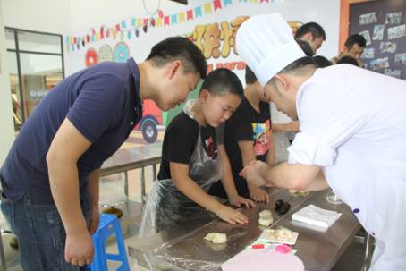 7月23日,20组“小候鸟”家庭在长发商厦的烘焙教室里吃到了人生第一块亲手制作的玫瑰豆沙月饼。