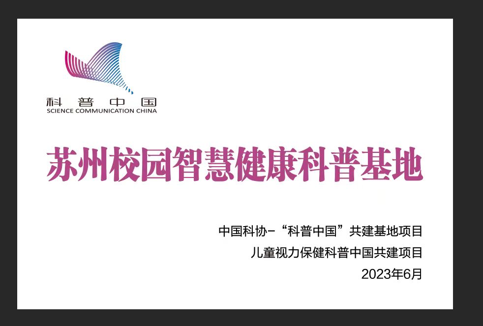 6月7日,由苏州市妇女儿童活动中心、中国体视学会、中国科学院苏州医工所、科普中国儿童视力保健共建项目组、苏州市儿童视力保健科普馆共同参与举办的“爱眼护眼守护视界争做逐光少年”眼健康校园公益活动在苏州高新区实验小学校教育集团珠江路路校区举行,苏州高新区实验小学校教育集团党委书记李志清和苏州市妇女儿童活动中心党支部书记陈丽共同为苏州首家 “校园智慧健康科普基地”揭牌,该基地将通过苏州校园智慧建设科普墙、自助式视力筛查仪、眼健康管理系统(校园版)建设眼健康科普校园场所,通过科普知识的传播、视光筛查设备的使用、网络平台的运用等手段,拓宽科普的边界拓展科普的受众,通过科技的手段帮助眼健康科普的防与控。基地也成为苏州市儿童视力保健科普馆的首个校园分站点,为该校学生提供视力健康管理服务。