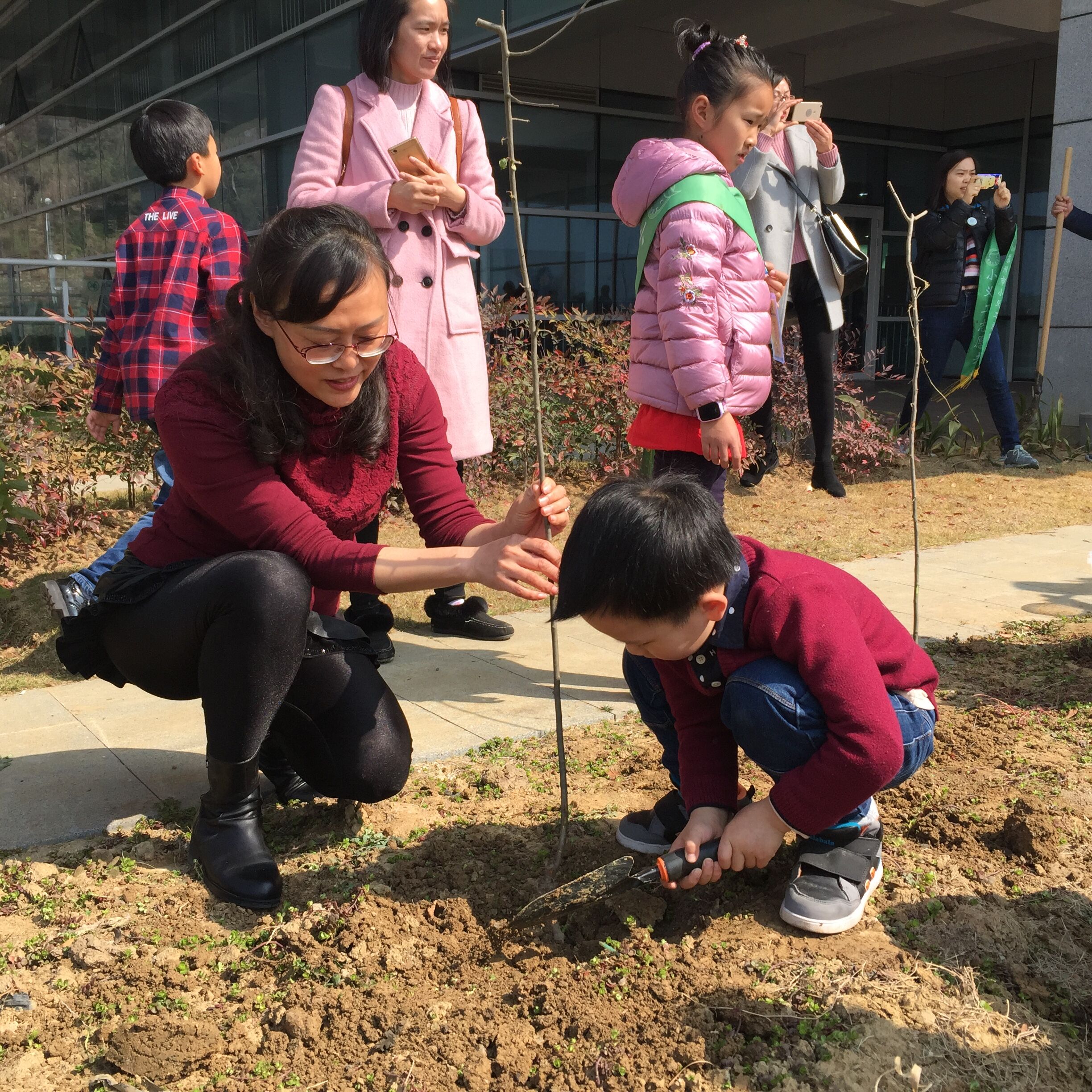 在我们的倡议和带领下,18组家庭正在开展“拥抱春天 播种绿色——植树节环保亲子活动”,亲手种植海棠、樱花树苗,同时作为“树长”伴随树苗共成长。